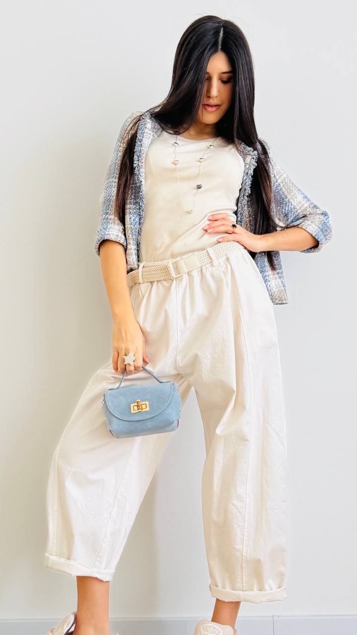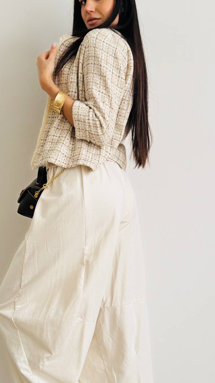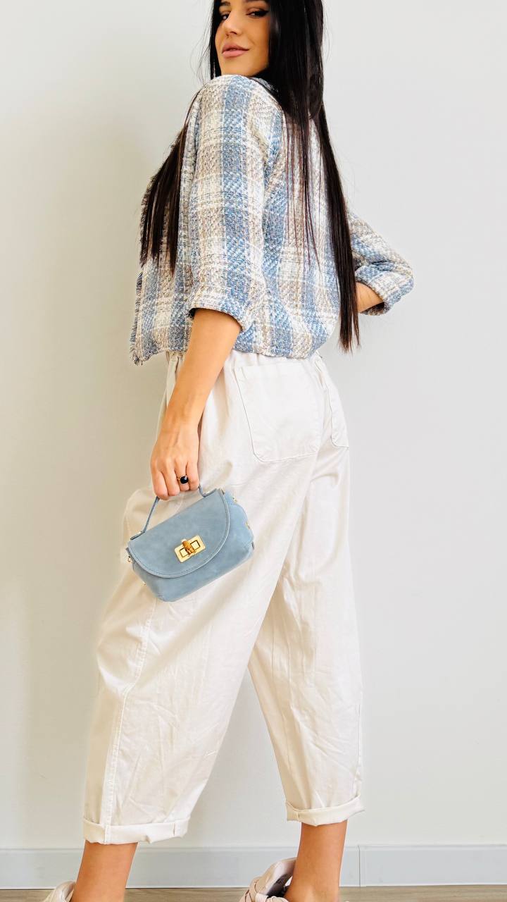 Blazerino corto decostruito realizzato in misto cotone. Disponibile dalla S alla L. Made in Italy.