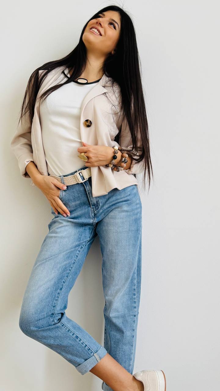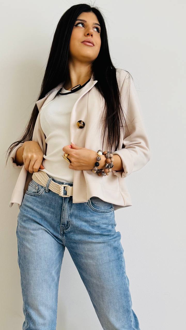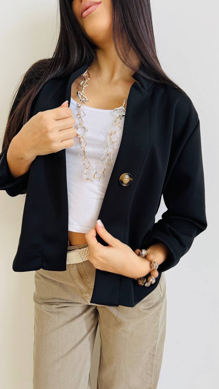 Blazer dalle linee a scatoletta con chiusura ad un bottone realizzato in scuba.