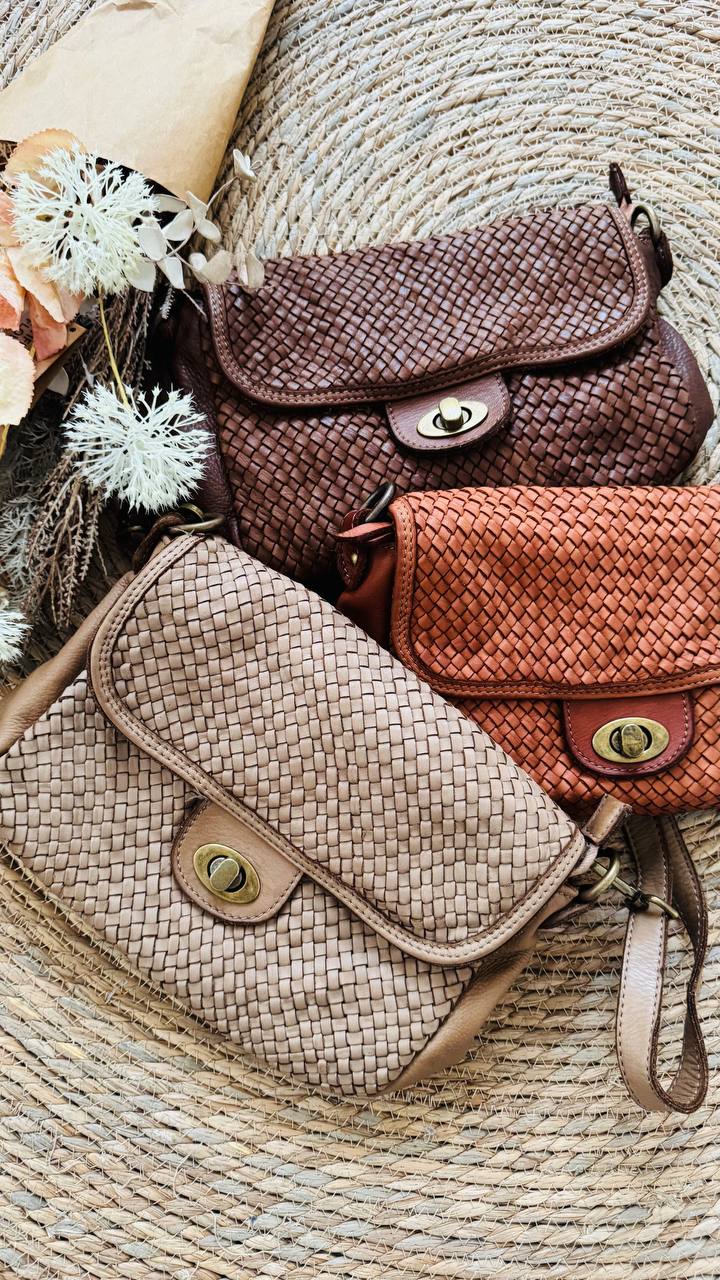 DESCRIZIONE Borsa realizzata in pellame invecchiato e intrecciato Chiusura a gancio, tracolla interna in pelle regolabile, tasca interna e tasca di sicurezza TAGLIA 20×28 cm Materiale: Vera pelle intrecciata e invecchiata MADE IN ITALY – Consegna in 20 gg lavorativi