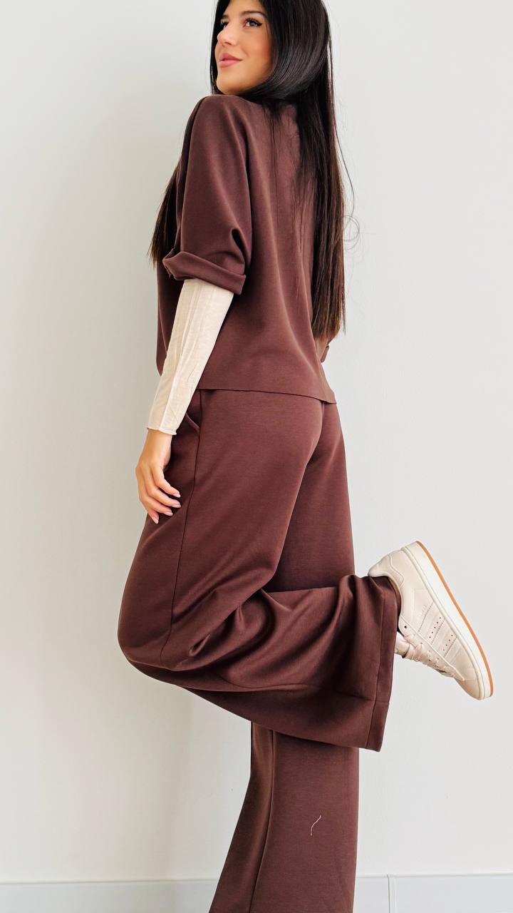 Box outfit contenente 3 capi che formano un look completo. Nella Box troverai: – Felpina dal taglio kimono con collo a vulcano realizzato in scuba tecnic – Pantalone a palazzo con coulisse in vita e tasche a filo in scuba tecnic – Maglia realizzata in misto cashmere (blu, nero, rosa, sabbia, bianco, verde militare, verde smeralto, azzurro, cioccolato…) Coordinato taglia unica consigliata fino alla 48. Made in Italy NB: consegna prodotto in 10 gg lavorativi ed è possibile in reso totale della Box ma non parziale, trattandosi di un articolo promozionale con disponibilità liminitata