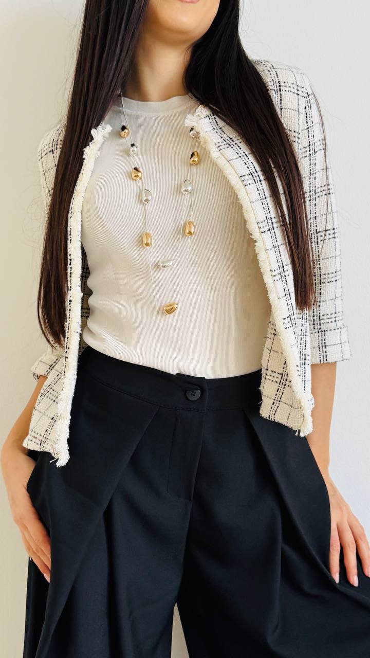 Canottina in filo di viscosa con collo americano. Taglia unica consigliata fino alla 44/46.