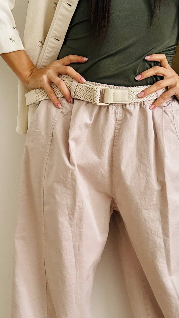 Cintura intrecciata regolabile, ideale per jeans ed abiti.