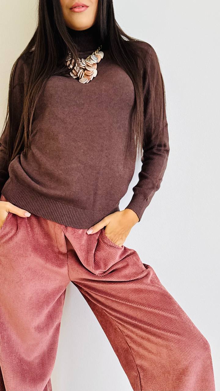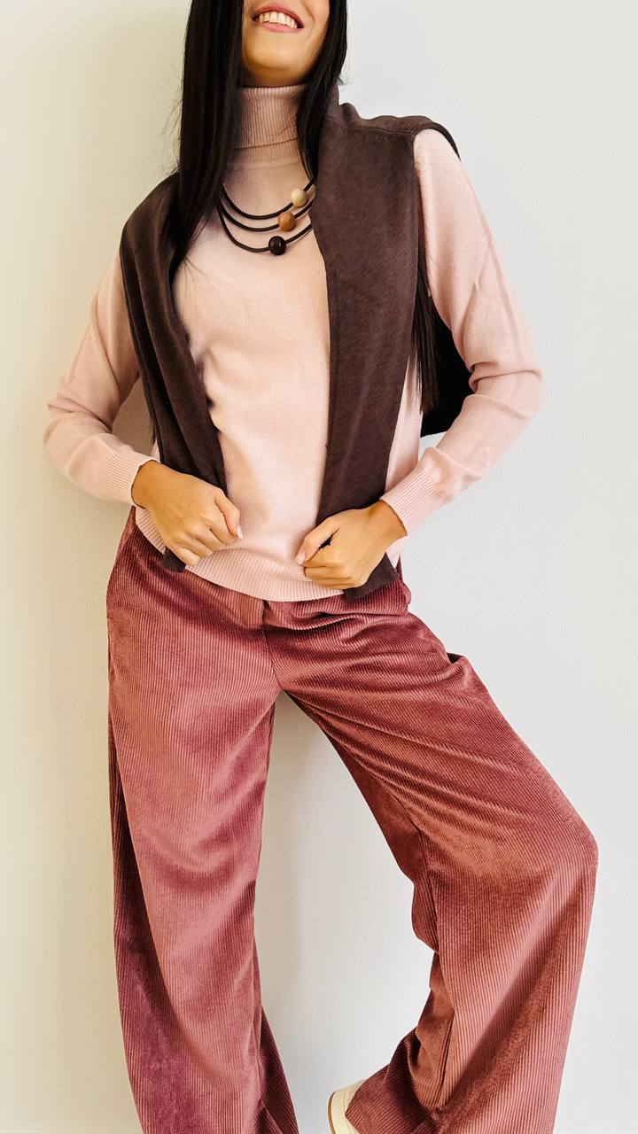 Maglioncino dolcevita realizzato in misto viscosa con vestibilità classica. taglia unica consigliata fino alla 46.