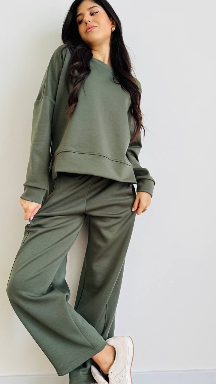 Felpa girocollo linea morbida realizzata in scuba (viscosa tecnic) con spacchetti laterali. Tagglia unica consigliata fino alla 48. Made in Italy.