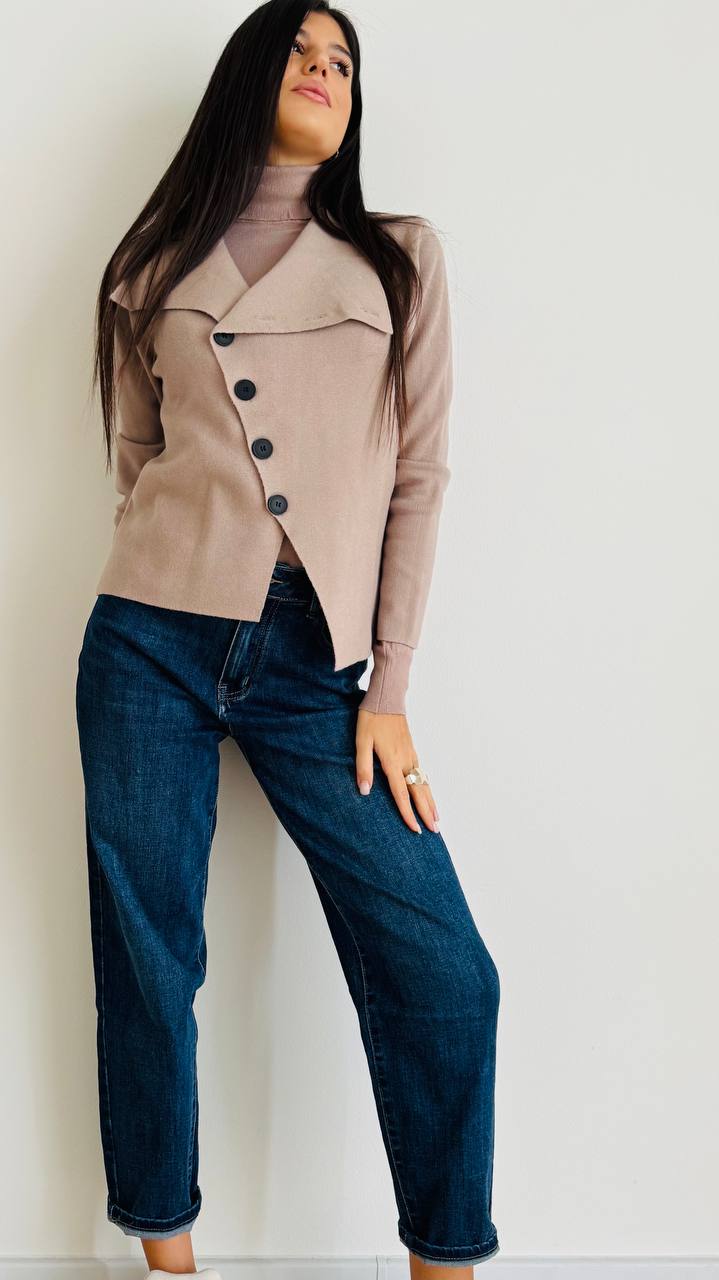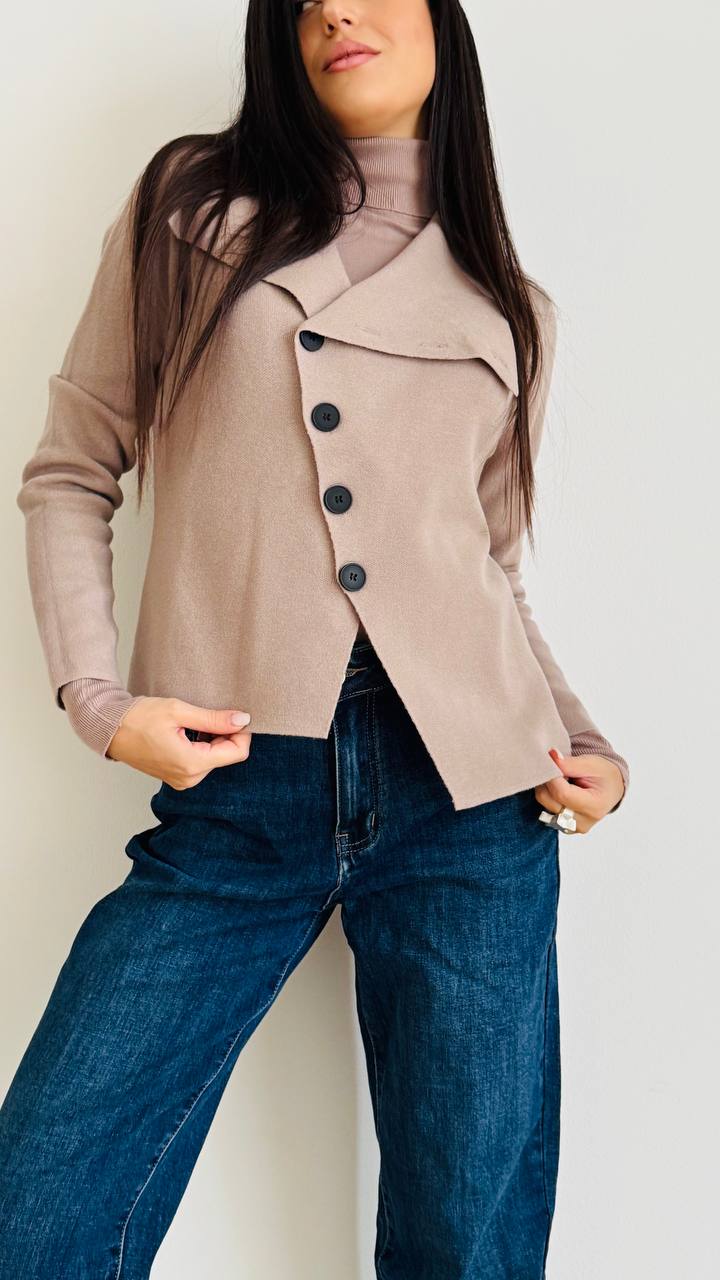 Blazer in maglia con abbottonatura obliqua realizzato in misto viscosa.