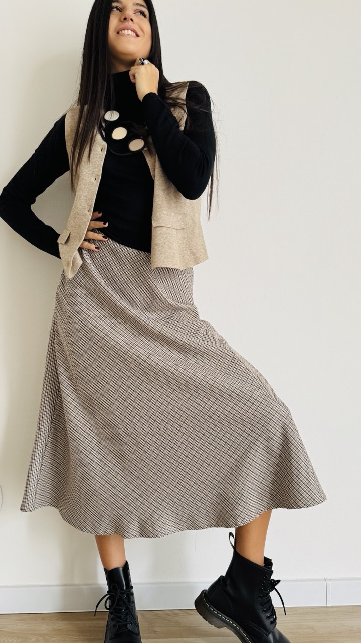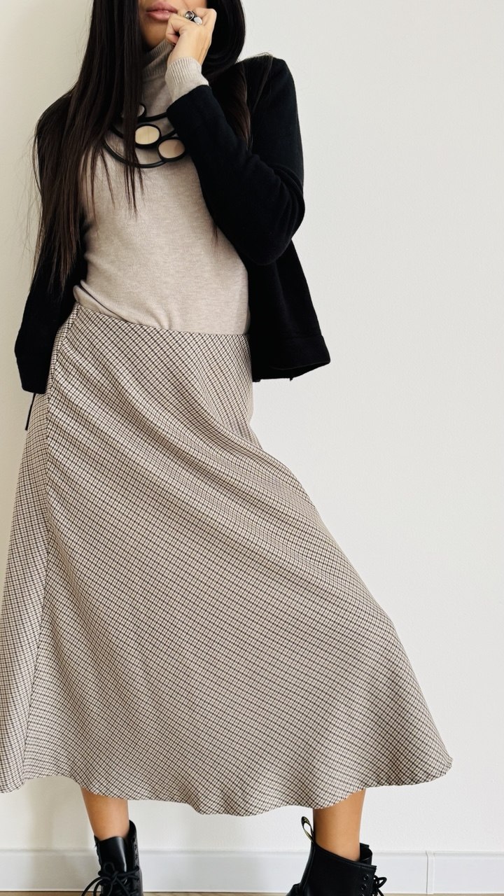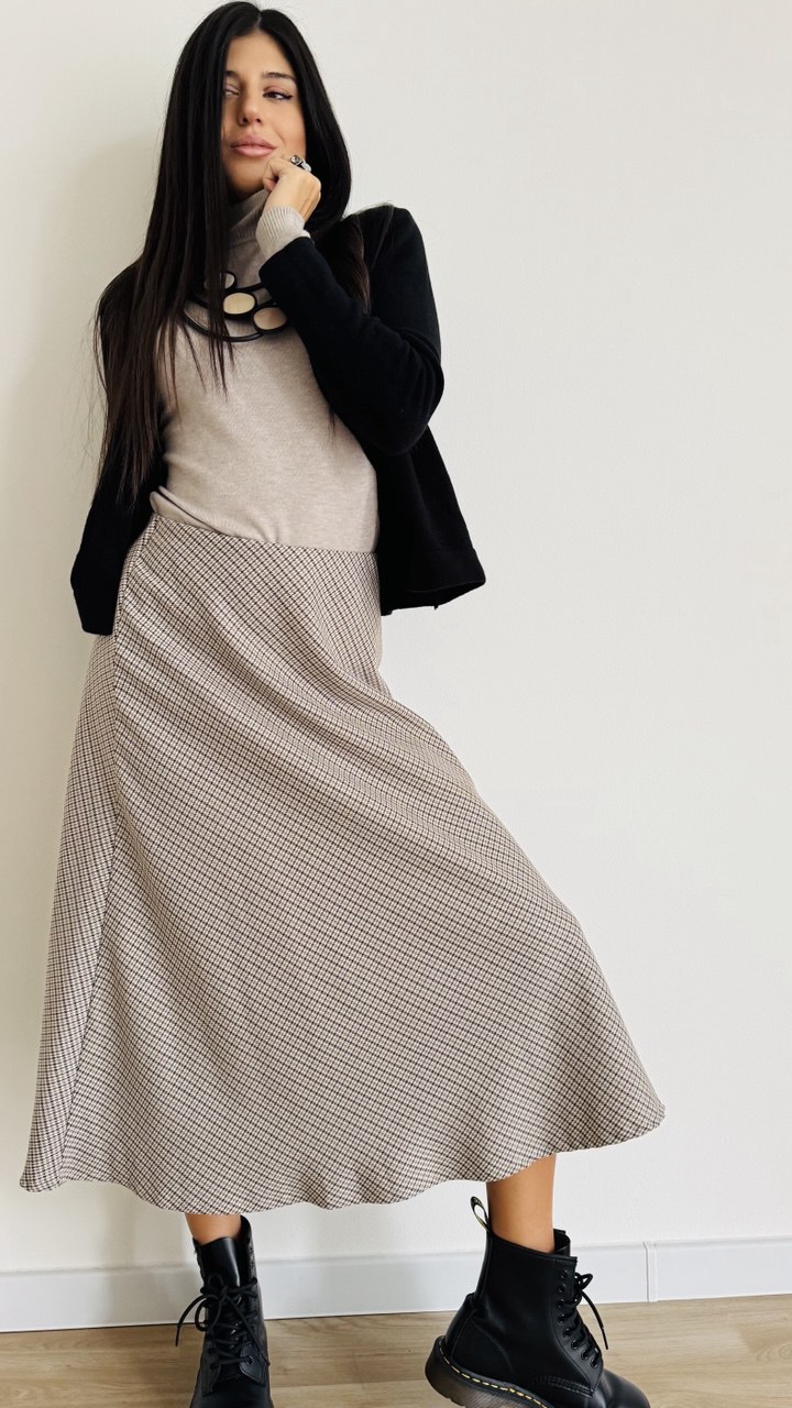 Gonna midi realizzata in misto cotone flanellato fantasia check con coulisse in vita. Taglia unica cisigliata fino alla 46. Made in Italy.