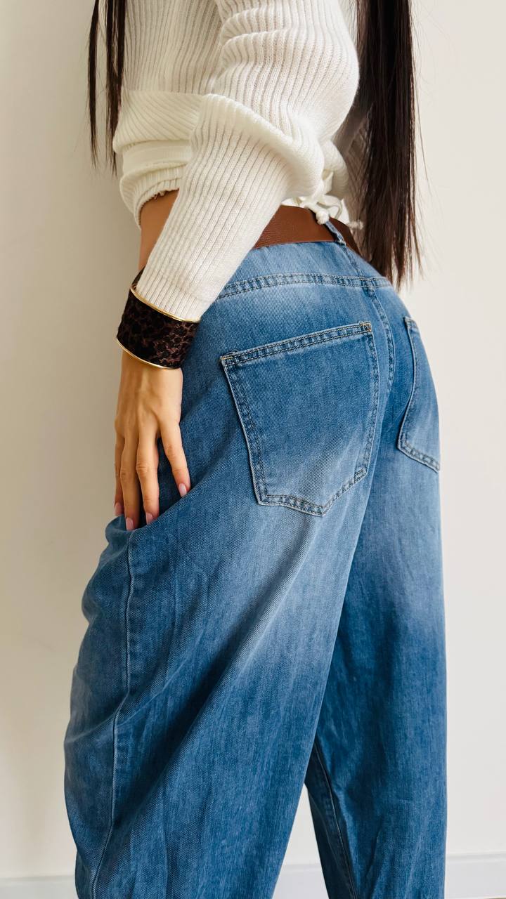Jeans baggy con vestibilità morbida e rilassata realizzato in denim extra light. Diusponibile dalla S alla XL con vestibilità comoda.