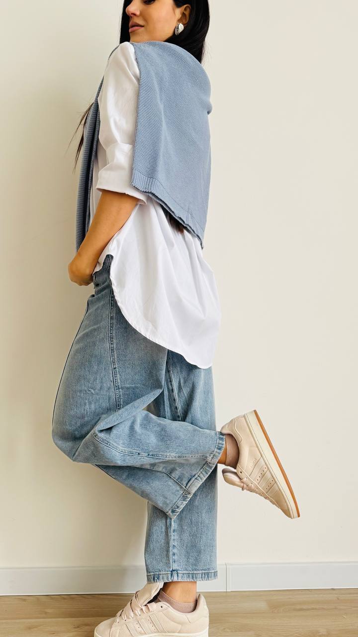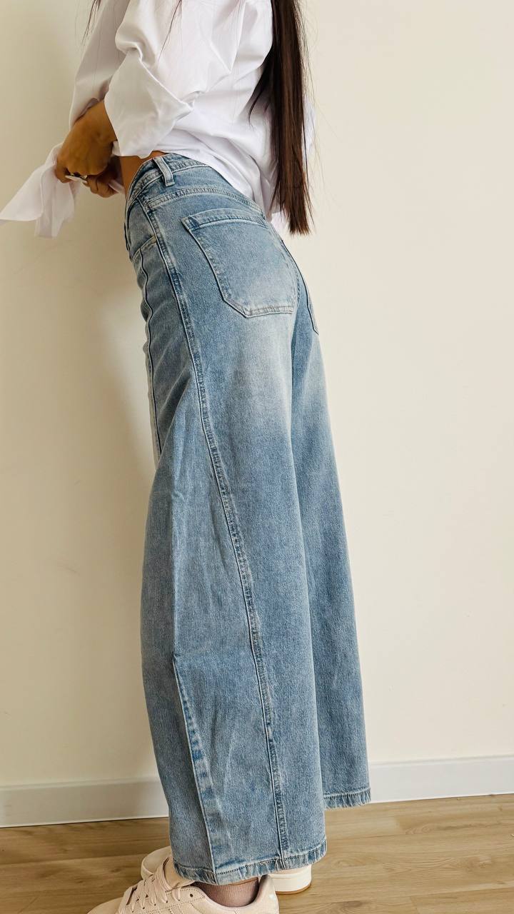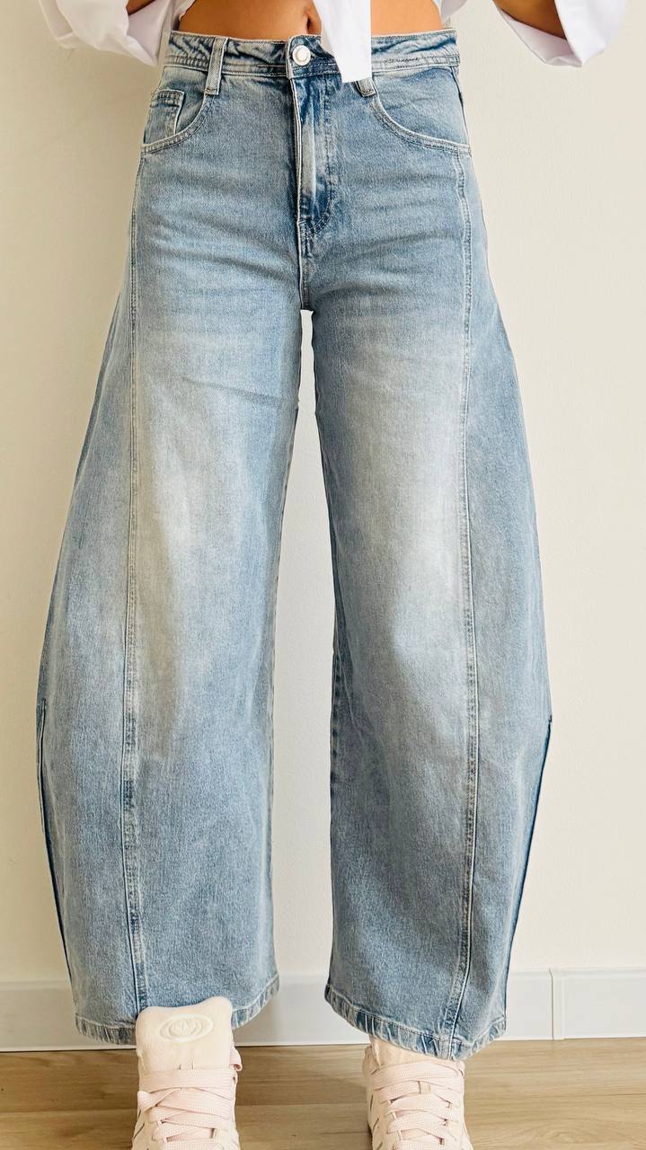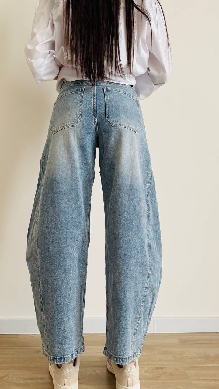 Jeans dalle linee particolari con gamba arrotondata e svasata.