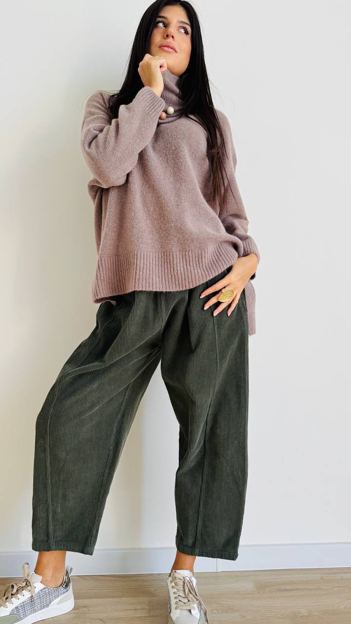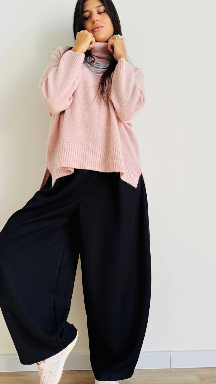 Maglioncino mornìbido realizzato in misto lana mohair con collo a vulcano e fondo morbido. Taglia unica consigliata fino alla 48. Made in Italy