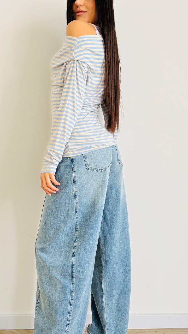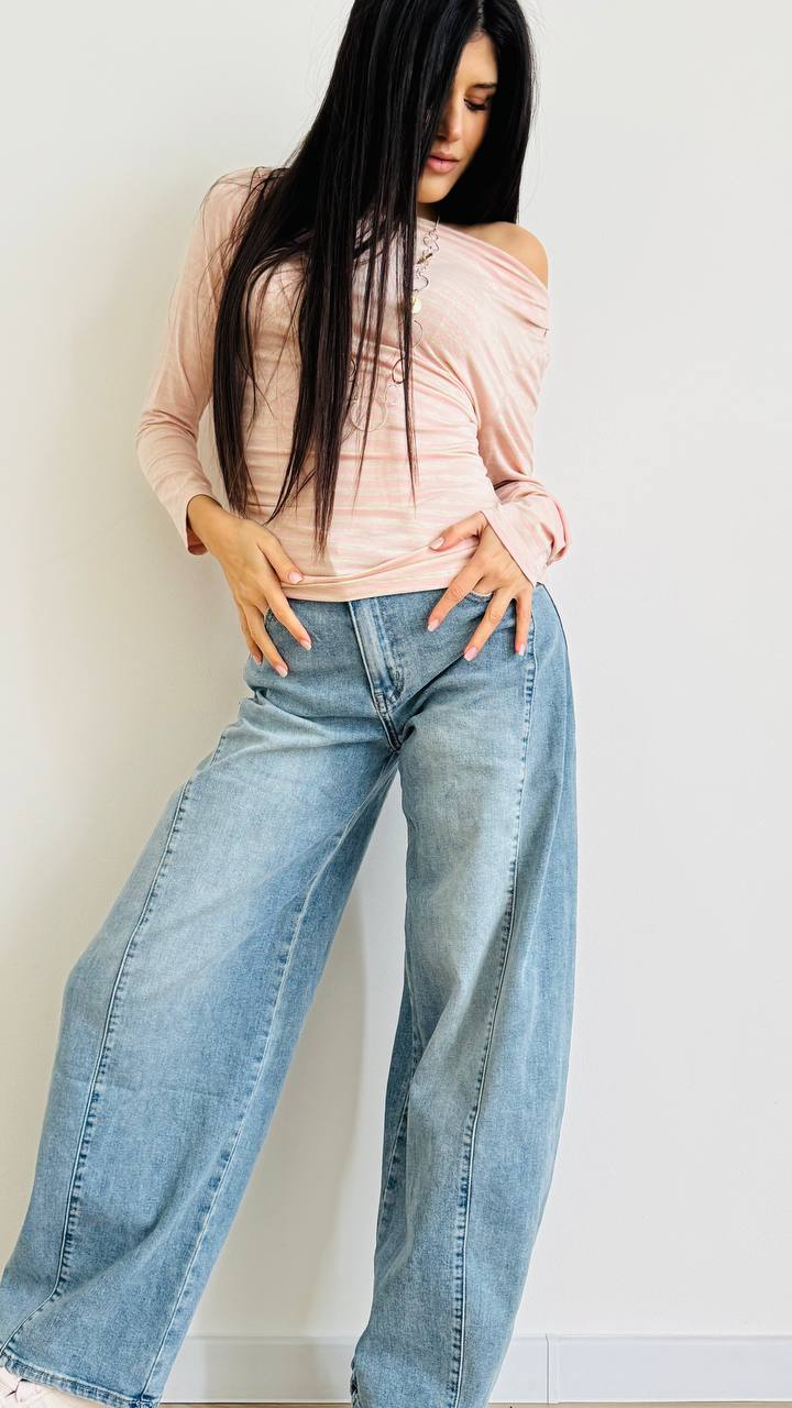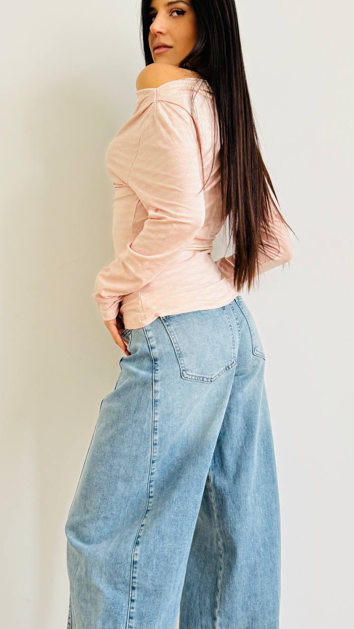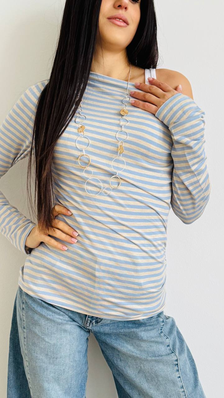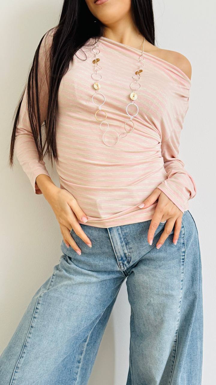 Maglia manica lunga in viscosa con scollo obliquo. Taglia unica consigliata fino alla 46. Made in Italy.