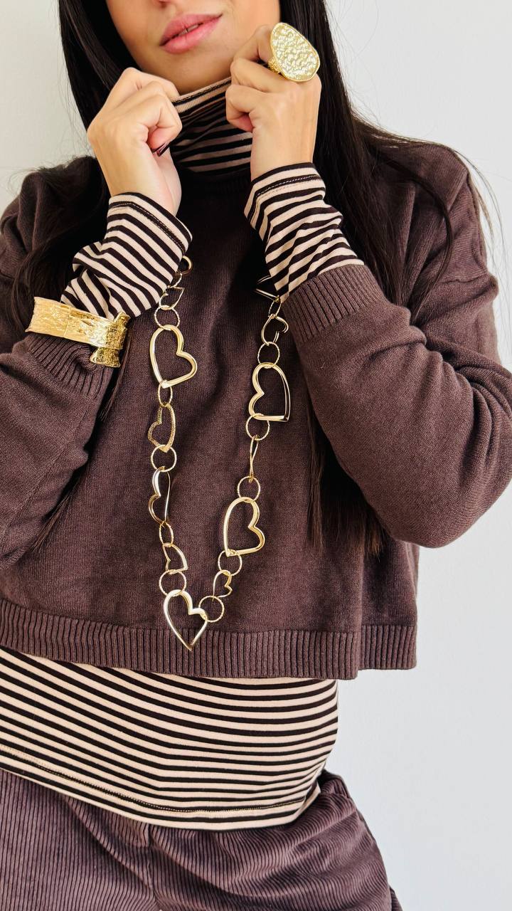 Maglioncino dalle linee corte realizzato in misto viscosa, ideale da utilizzare per look sovrapposti. Tagglia unica consigliata fino alla 46.