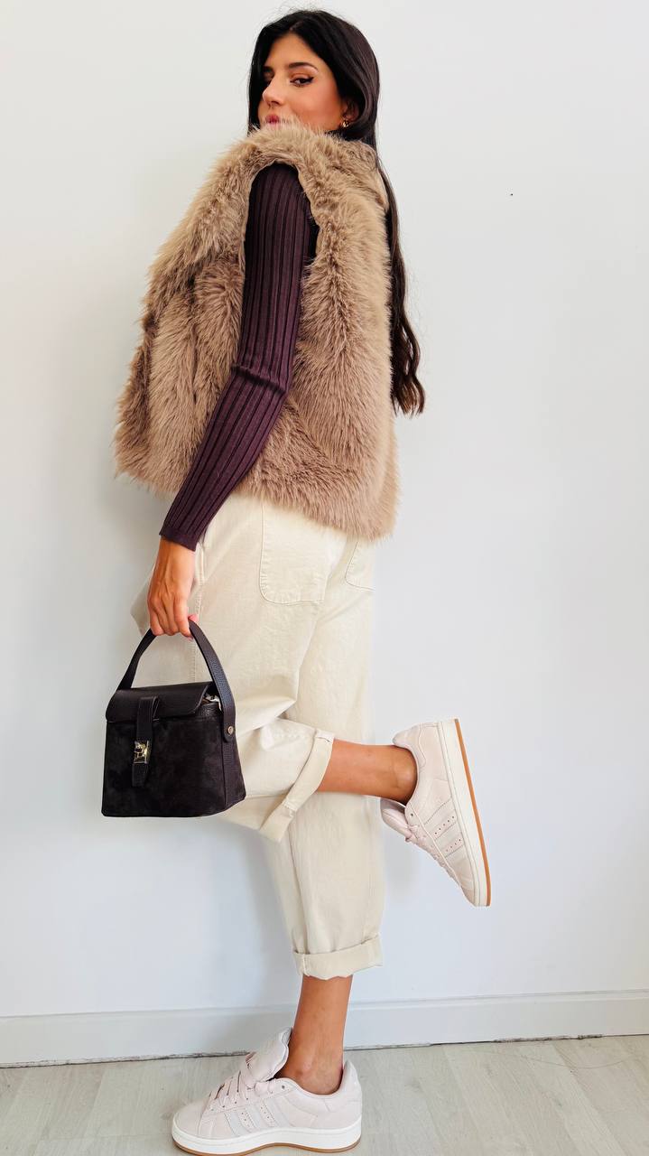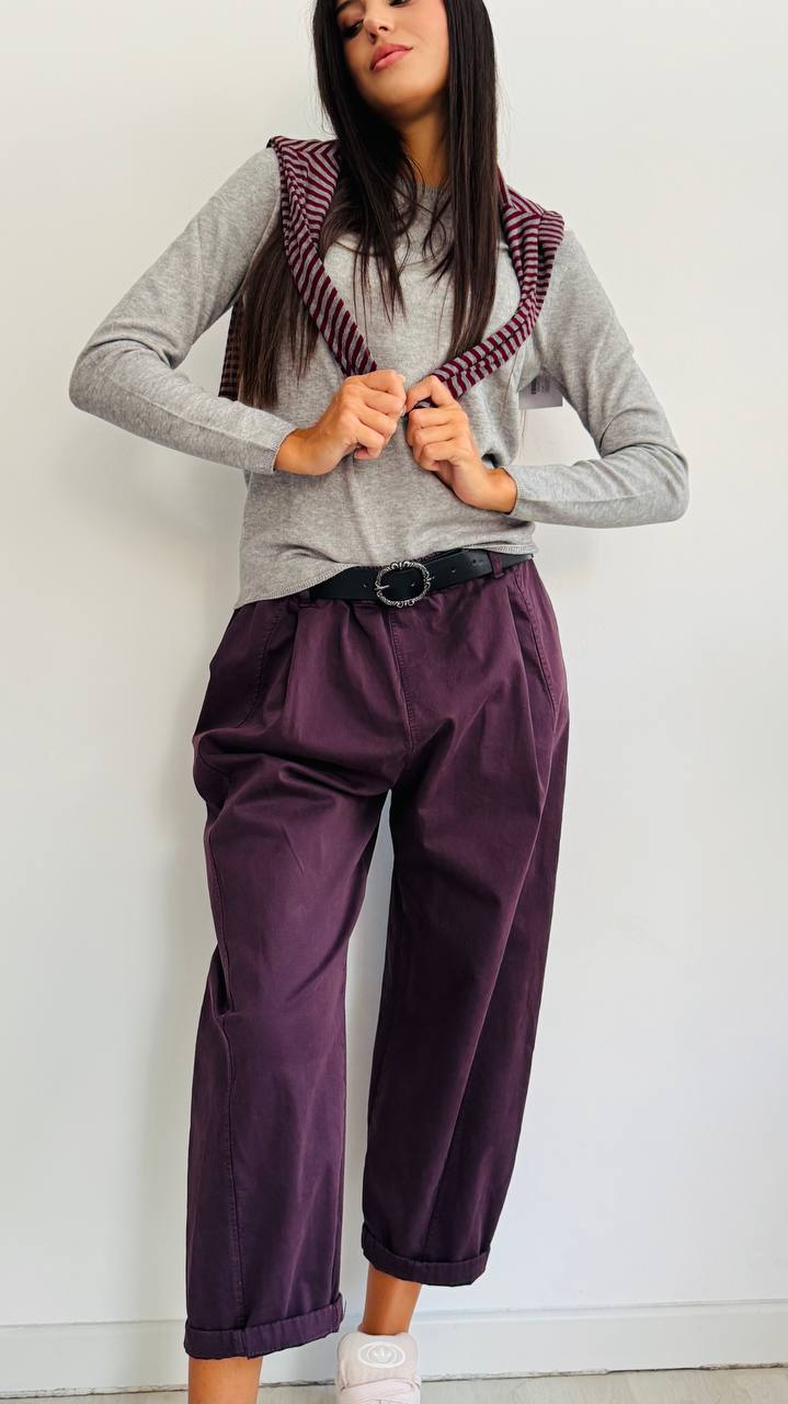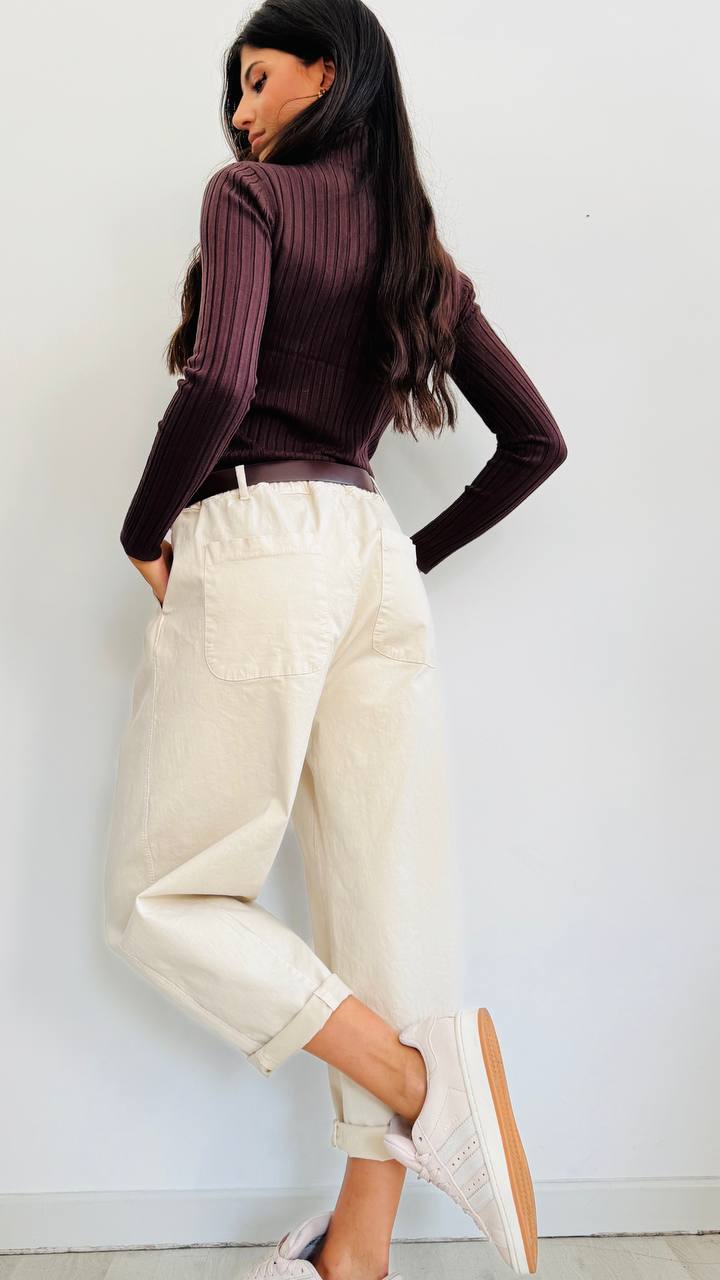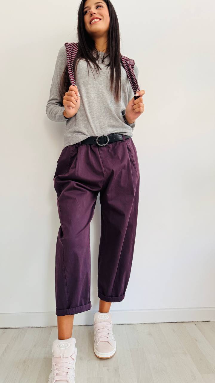 DESCRIZIONE – Pantalone baggy con coulisse in vita – Tasche a filo e linea arrotondata – Vestibilità comoda – TAGLIA UNICA consigliata fino alla 46 – Materiale: cotone autunnale leggermente elasticizzato – MADE IN ITALY