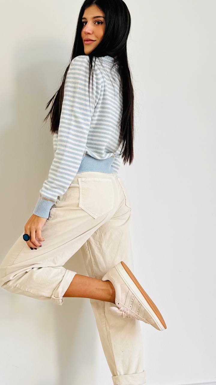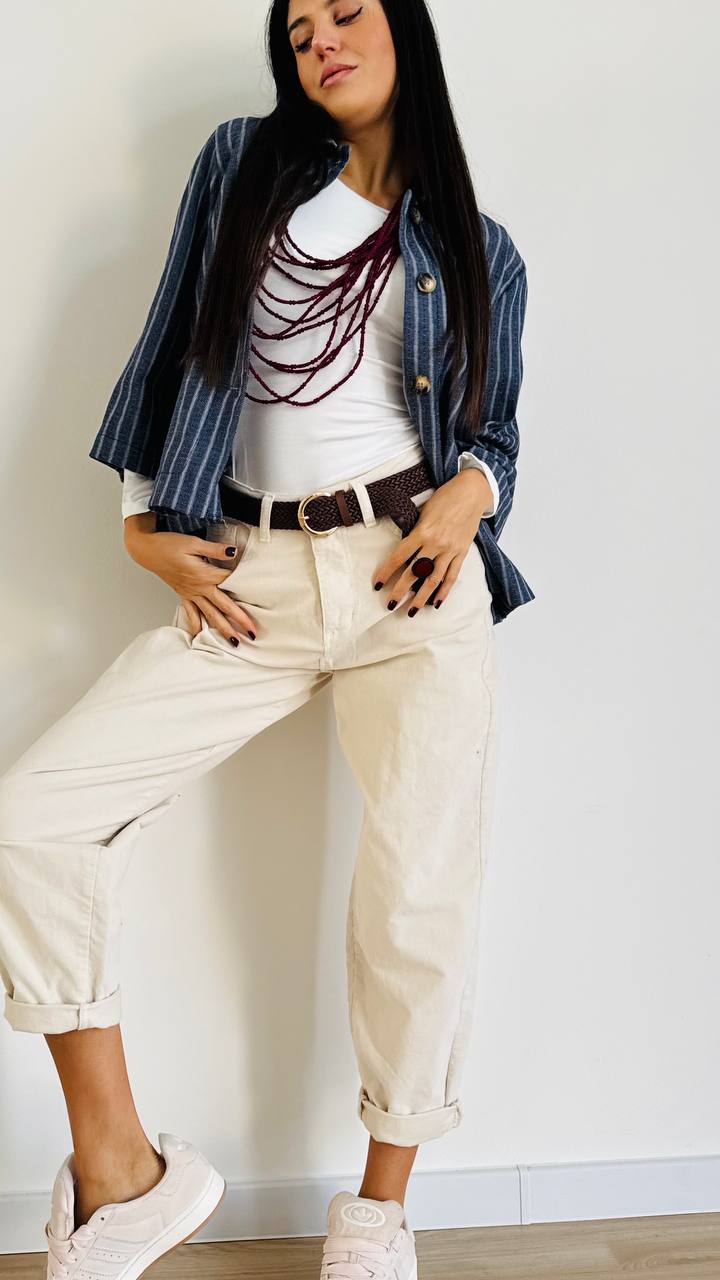 Pantalone Mom fit realizzato in velluto a costa obliqua sottile.