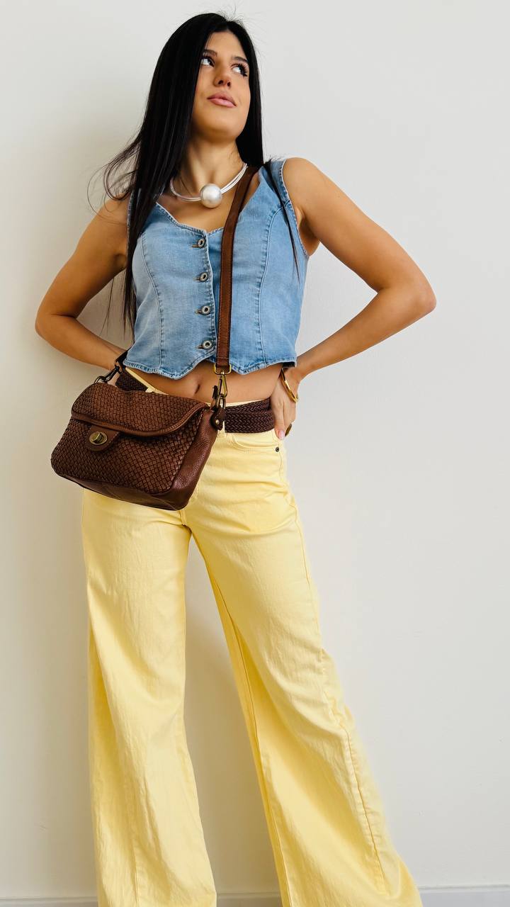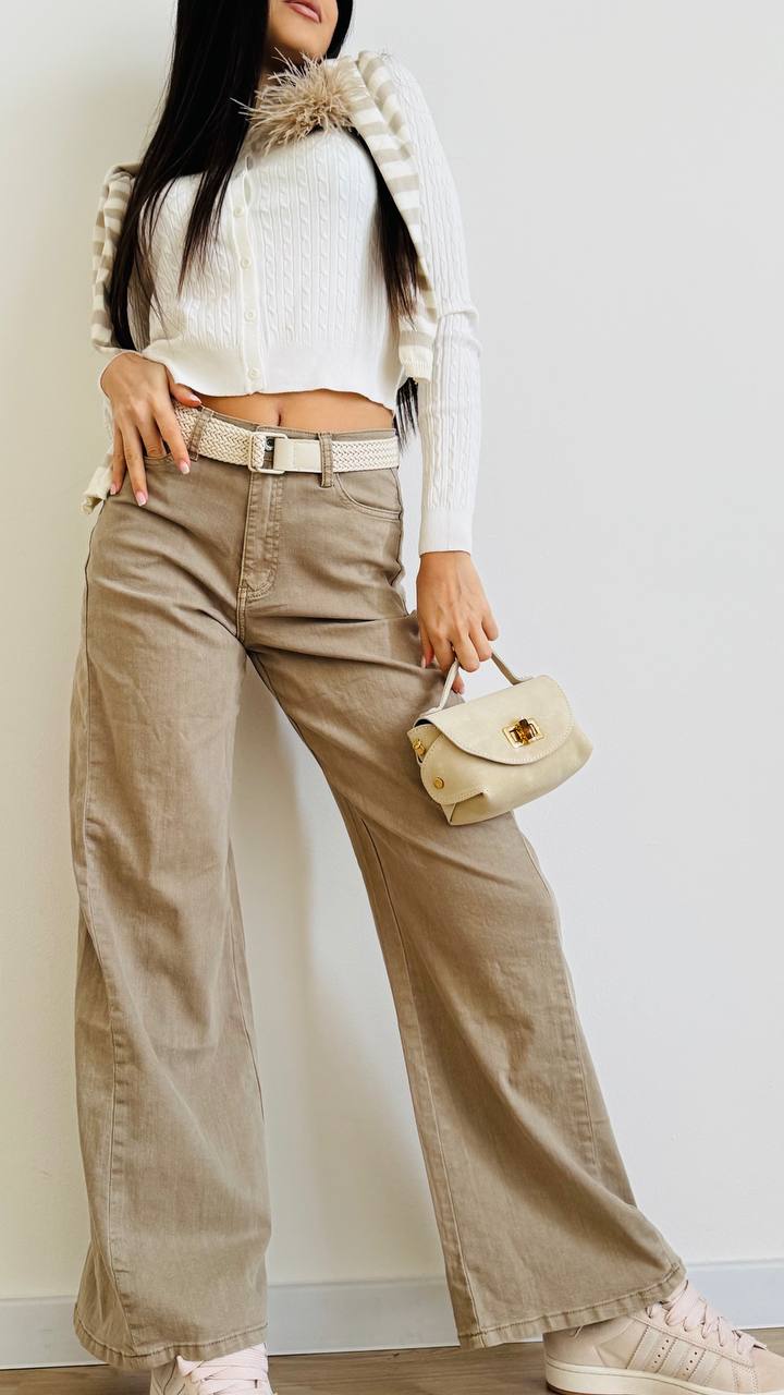 Pantalone dritto dalle linee leggermente svasate realizzato in misto cotone primaverile leggermente elasticizzato. Vestibilità comoda XS=40/42 S= 42/44 M=44/46 L=46/48
