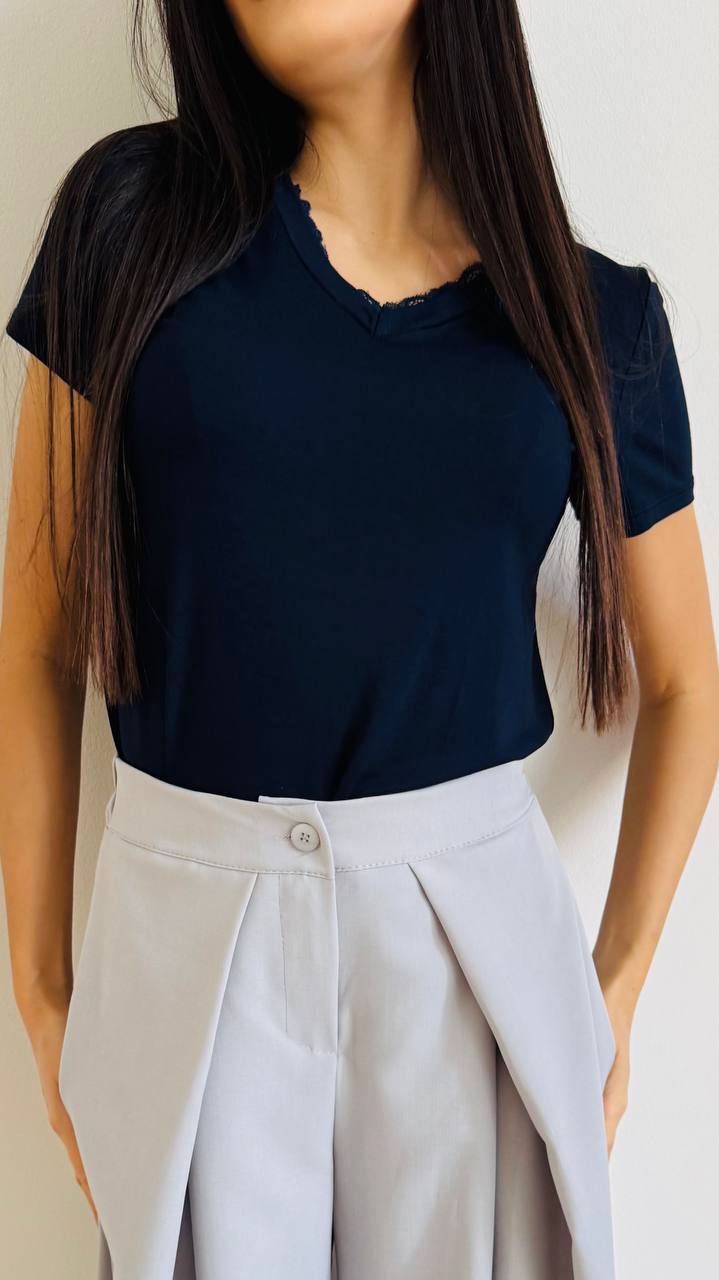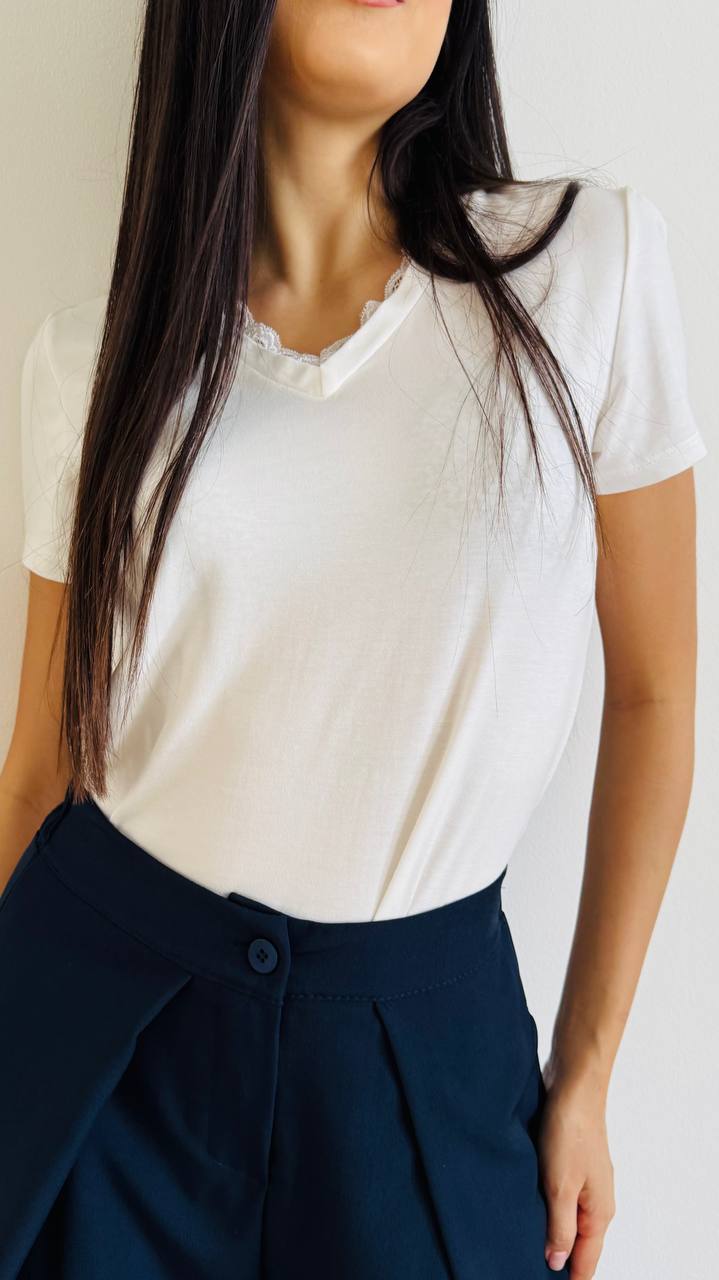 T-shirt mezza manica in viscosa con profilo in pizzo.